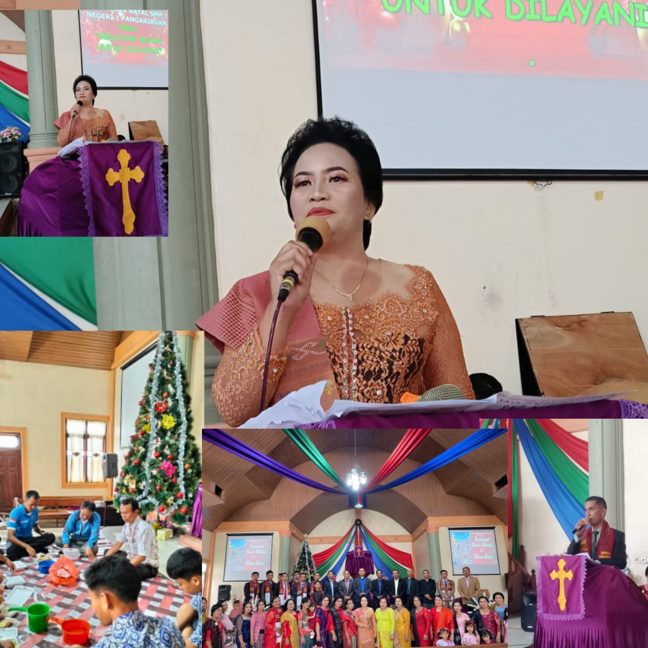 Selasa 16/12/2024 SMP N 1 Pangaribuan Kecamatan Pangaribuan Kabupaten Tapanuli Utara saling bergandengan tangan dengan Forkopinca dalam mengikuti acara Natal yang berkegiatan di gereja GKPI Pakpahan resort Pangaribuan wilayah VI pada hari Senin,16 Desember 2024 dilaksankan perayaan Natal Keluarag Besar SMP Negeri 1 Pangaribuan. Dengan mengusung Tema “Melayani Bukan Untuk Dilayani” Mateus 20:28