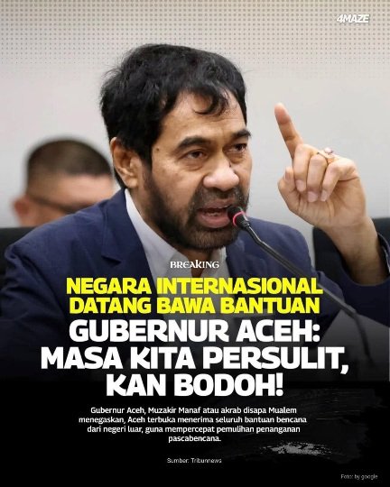 The Governor of Aceh, Muzakir Manaf (Mualem), has reaffirmed that Aceh is fully open to receiving humanitarian assistance from foreign nations and international organisations to accelerate recovery efforts following the major disaster that has struck several regions. at 8 Desember 2025.