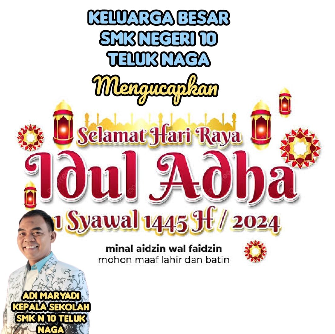 Saya Adi Maryadi Kepala Sekolah SMKN 10 Teluk Naga Kabupaten Tangerang , mengucapkan , “Selamat Hari Raya Idul Adha 1445 Hijriyah / 2024 M .