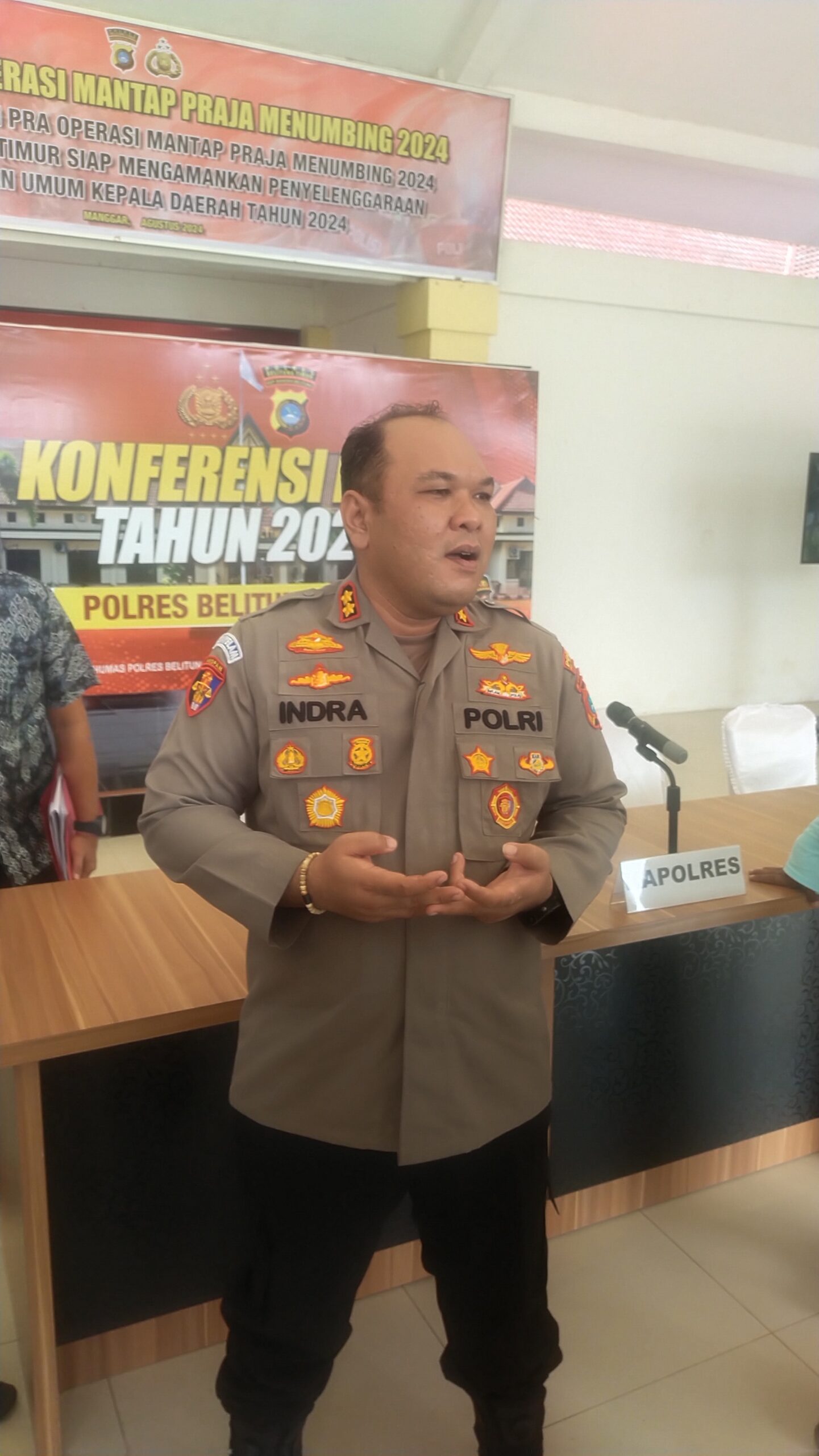 AKBP Indra Feri Dali Munthe SH.,S.,I.,K.,MH melakukan pemeriksaan kepada UMKM Dusun Baru Kecamatan Gantung Kabupaten Belitung Timur, Provinsi Bangka Belitung. Dalam Komferensi Pers Indra didampingi, Kasat Reskrim AKP Ryo Guntur, Kanit tepiter Shandi, Kanit Humas Muctharum. Jumat (16/08/2024)