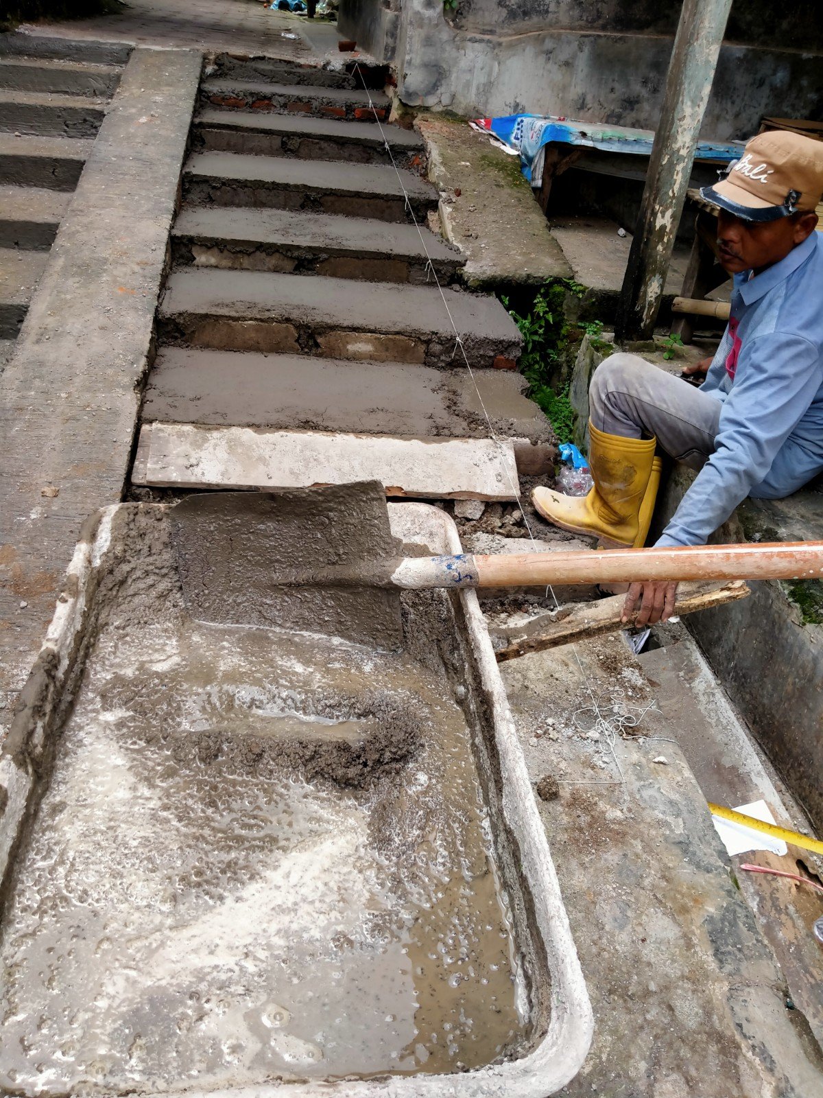 Selama tiga tahun akses jalan menuju pasar Jelbuk rusak parah dan sering kali warga yang pergi belanja sering kali terjatuh khususnya ibu ibu waktu berkunjung untuk belanja karna kondisi jalannya rusak,curam dan licin.