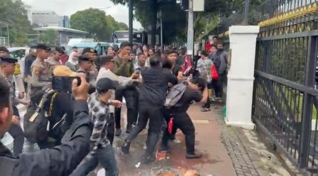 Dalam perkembangan aksi tersebut, sempat terjadi saling dorong dan keributan antara kedua kelompok massa yang kemudian memicu kericuhan di lokasi. Akibat insiden tersebut, tiga orang dilaporkan mengalami luka-luka dan satu unit sepeda motor mengalami kerusakan setelah dirusak oleh massa aksi.