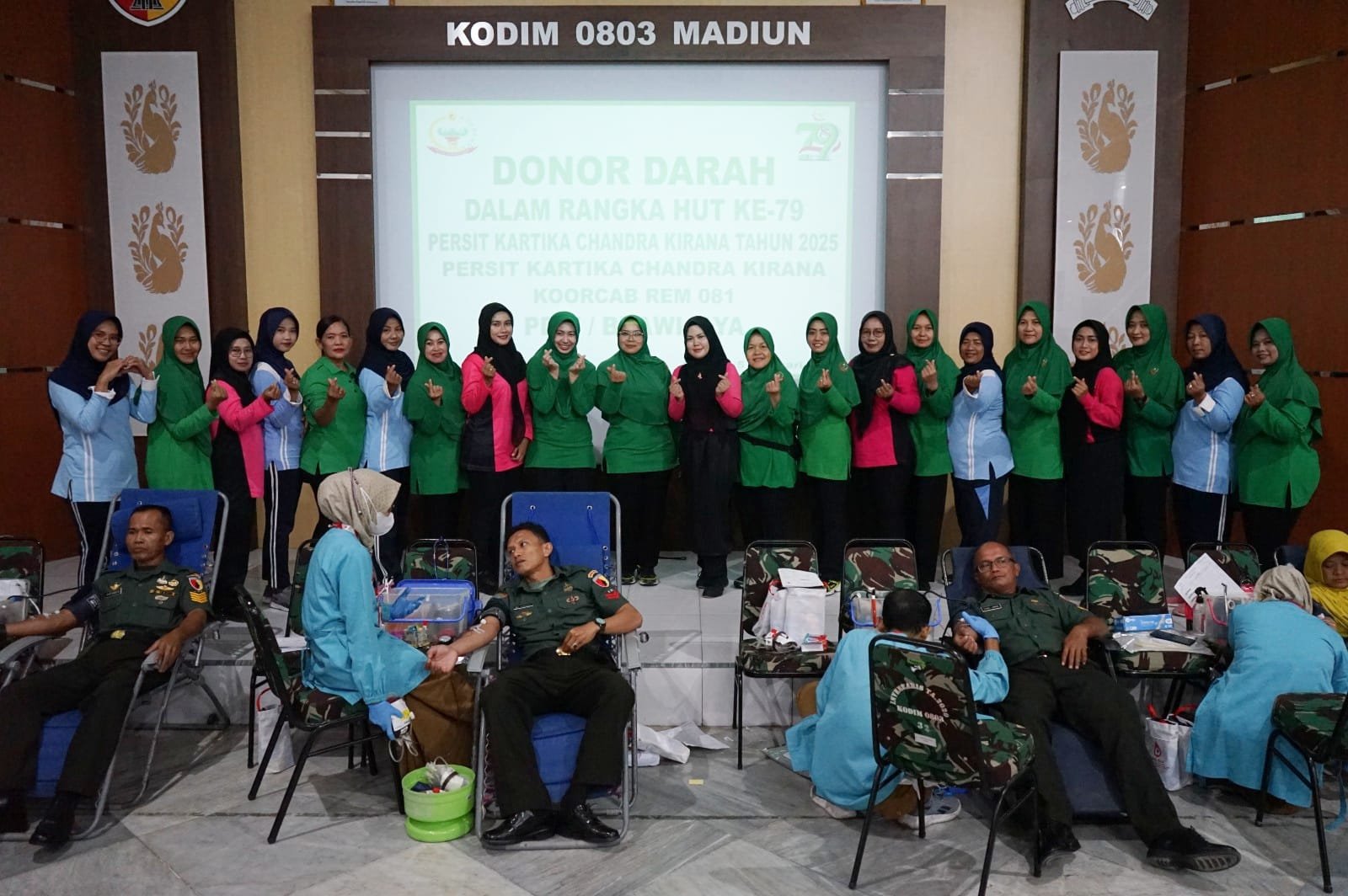Dalam donor darah dalam rangka HUT ke-79 Persit KCK di Madiun itu berhasil terkumpul sebanyak 96 kantong darah. YL
