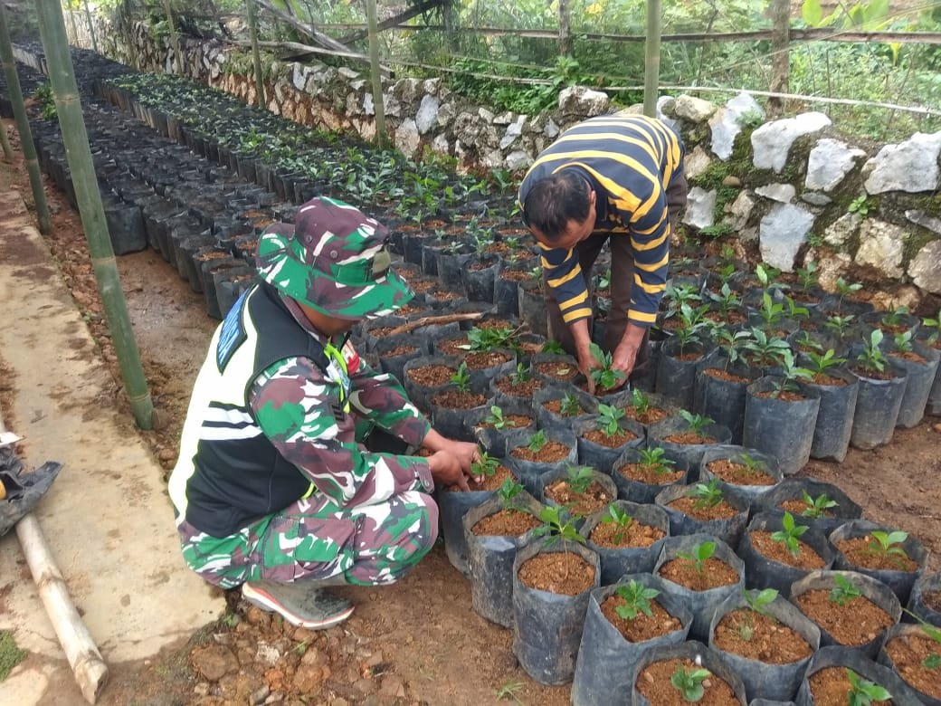 Babinsa Koramil 06/Jagong, Serka Kusyadi melaksanakan penyemaian bibit kopi di Polybag milik warga binaan di Desa Telegesari, Kec. Jagong Jeget, Kab. Aceh Tengah. Saptu (05/04/25)