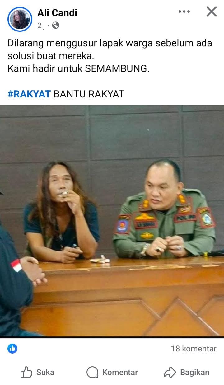 “Dilarang menggusur lapak warga sebelum ada solusi buat mereka. Kami hadir untuk Semambung,” tulisnya.