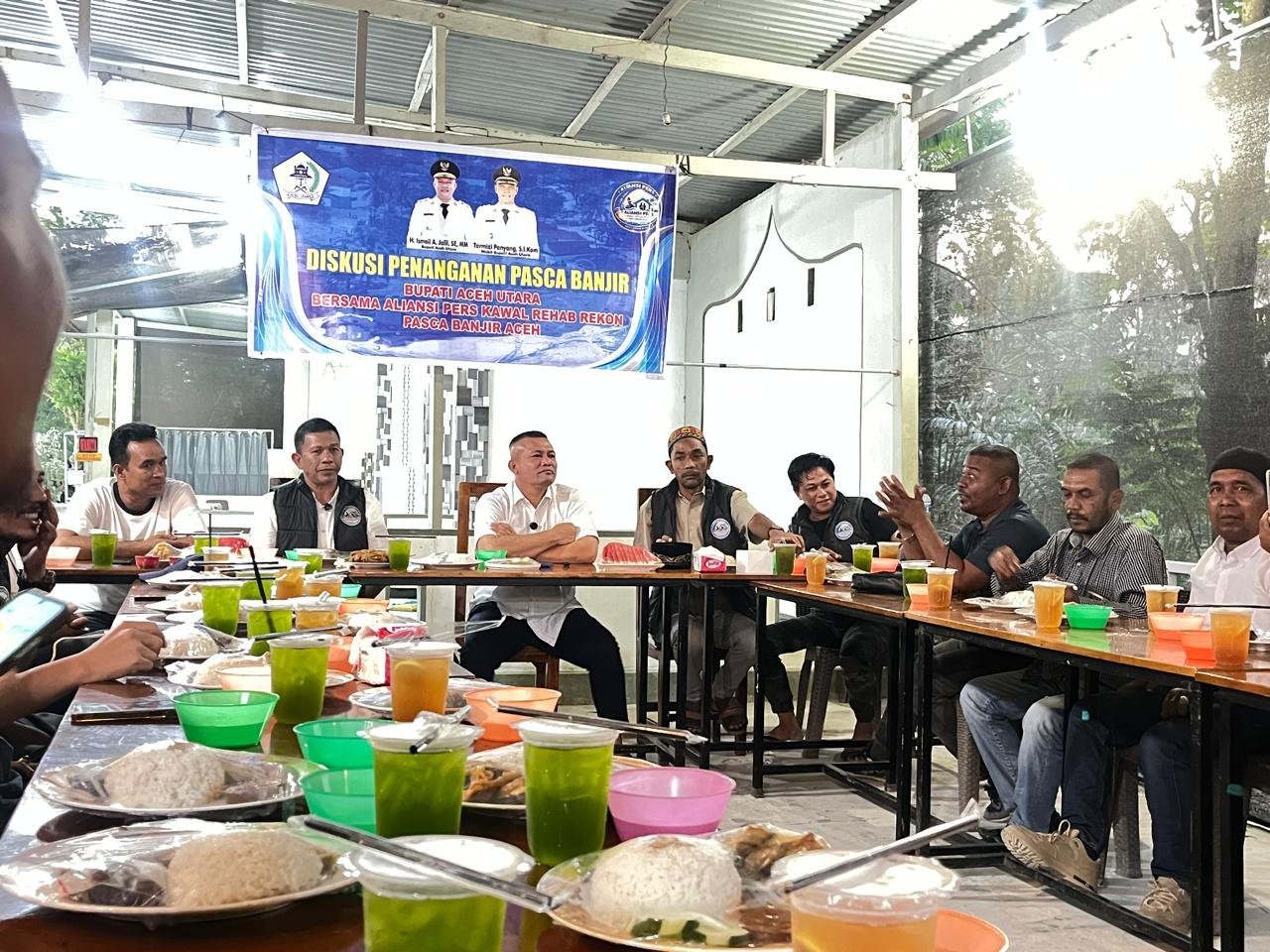 Dalam pertemuan tersebut, para jurnalis yang tergabung dalam Aliansi Pers Rehab Rekon Aceh berdiskusi langsung dengan Bupati Aceh Utara, Ismail A. Jalil yang akrab disapa Ayah Wa, mengenai berbagai isu pembangunan daerah, khususnya terkait program rehabilitasi dan rekonstruksi (rehab rekon) pasca banjir yang melanda sebagian besar wilayah Aceh Utara pada akhir 2025 lalu.