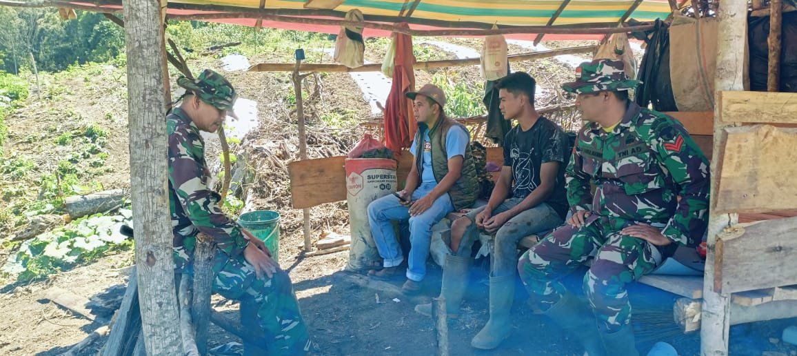 Di sela-sela pelaksanaan program TNI Manunggal Membangun Desa (TMMD) ke-126, anggota Satgas TMMD Kodim 0106/Aceh Tengah memanfaatkan waktu istirahat untuk melakukan komunikasi sosial (komsos) bersama warga Desa Kute Keramil, Kecamatan Linge, Kabupaten Aceh Tengah, pada Selasa (28/10/2025).