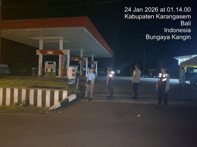 Patroli malam hari Jumat 23/1/2026 Pukul 03.03 WITA sampai selesai dilakukan personil piket Polsek Bebandem di pimpin Kanit Samapta Polsek Bebandem IPDA I Made Dodi Suartawan dengan personil piket fungsi.