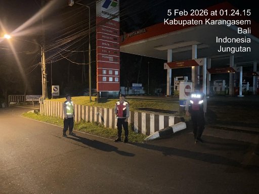 Patroli malam hari Rabu 4/2/2026 Pukul 03.03 WITA sampai selesai dilakukan personil piket Polsek Bebandem di pimpin Kanit Samapta Polsek Bebandem IPDA I Made Dodi Suartawan dengan personil piket fungsi.