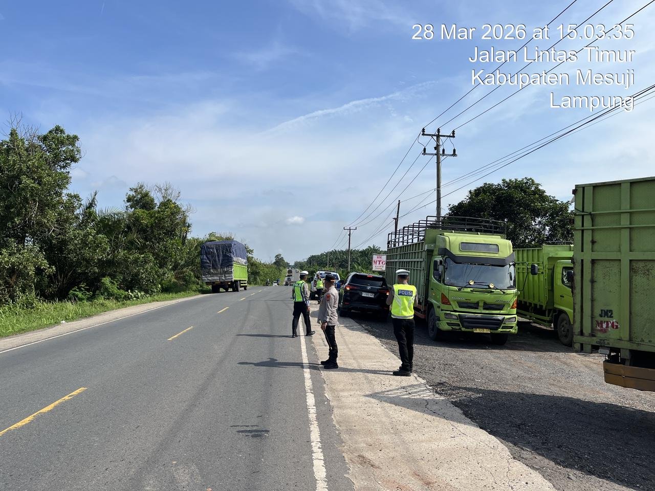 Mesuji – Kapolres Mesuji bersama Kasat Lantas melaksanakan pengantungan kendaraan sumbu 3 di tempat tempat yang sudah di sediakan oleh Jajaran Polres Mesuji selama dua hari terhitung dari hari Jumat Tanggal 27 hingga 28 Maret 2026.
