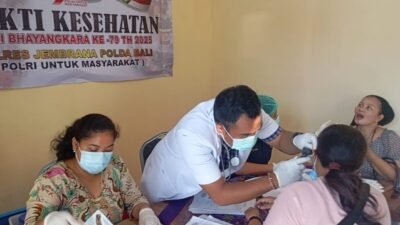 Sebanyak 87 peserta, terdiri dari 56 relawan SPPG dan 31 warga umum, memadati lokasi sejak pagi. Mereka mengikuti rangkaian pemeriksaan yang dipimpin langsung oleh tim medis Klinik Pratama Polres Jembrana, didukung Yayasan Kemala Bhayangkari Cabang Jembrana.