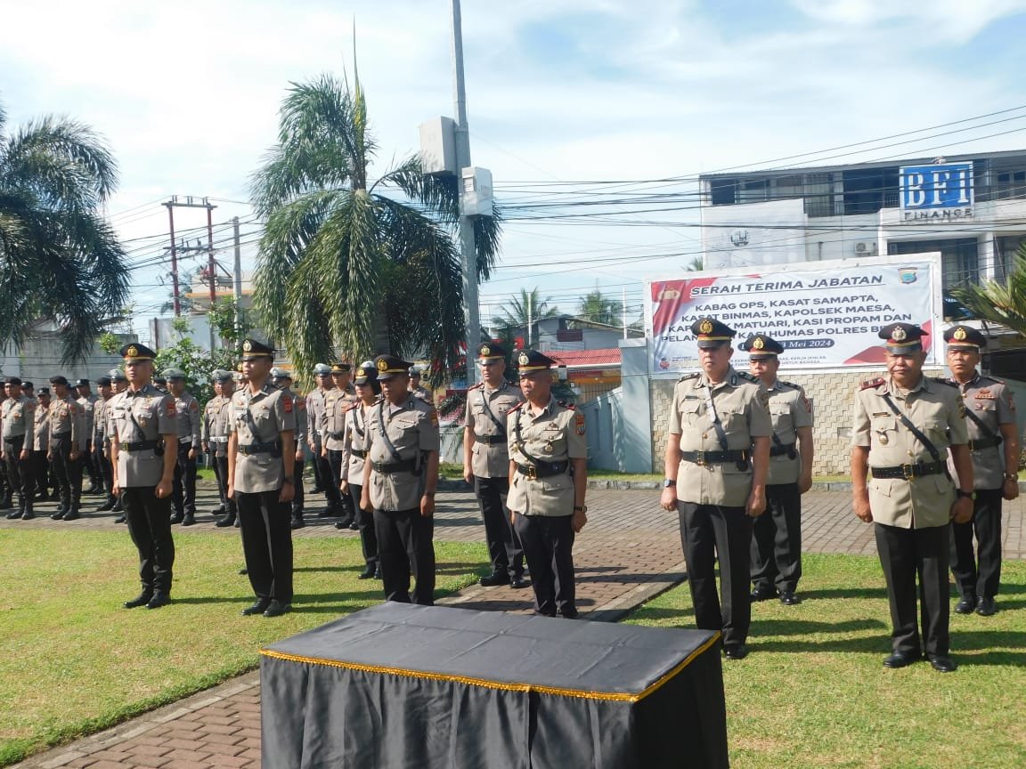 Pejabat lama dan baru dari berbagai posisi kunci seperti Kabag Ops, Kasat Samapta, Kasat Binmas, Kapolsek Maesa, Kapolsek Matuari, dan Kasie Propam melakukan serah terima jabatan.