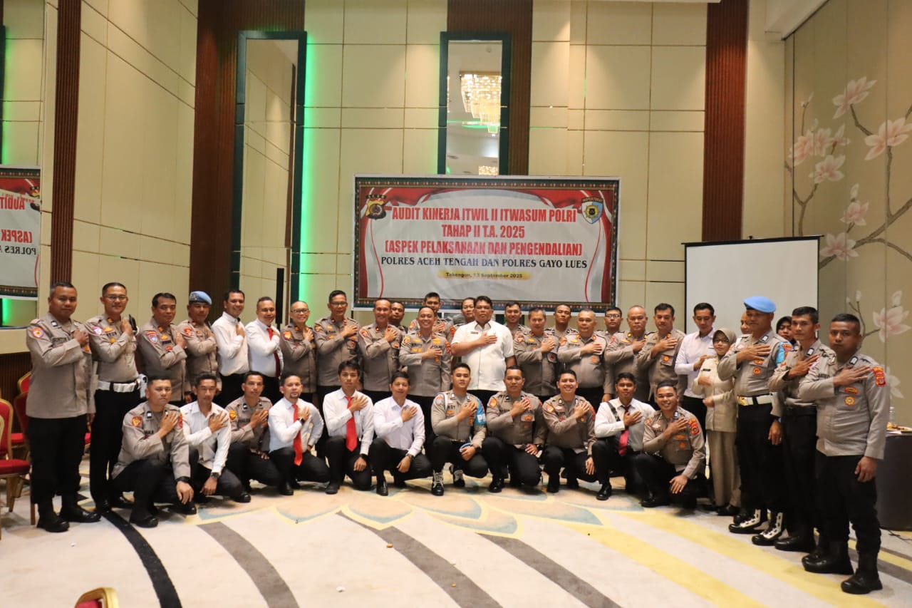 Tim Audit Kinerja Tahap II T.A. 2025 Itwasum Polri melaksanakan pemeriksaan terhadap Polres Aceh Tengah dan Polres Gayo Lues dengan fokus pada aspek pelaksanaan dan pengendalian, Sabtu (13/9/2025), bertempat di Aula Ballroom Hotel Parkside Takengon.