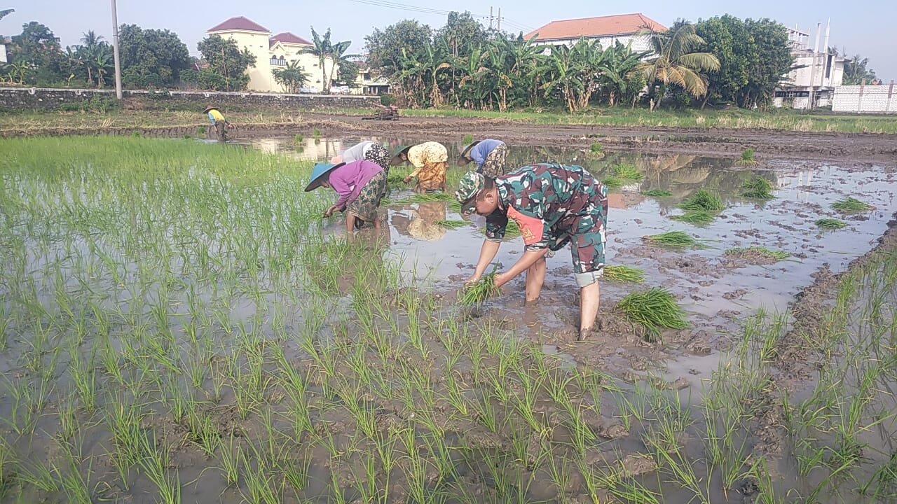 Pada pagi yang cerah itu, Serda Rofik tidak segan-segan turun ke areal persawahan yang tergenang air dan berlumpur, menyatu dengan para petani yang tengah sibuk menanam bibit padi. Babinsa yang dikenal dekat dengan warga ini turut memegang ikatan bibit dan menanam satu per satu, sejajar dengan barisan petani yang bekerja dengan penuh semangat.