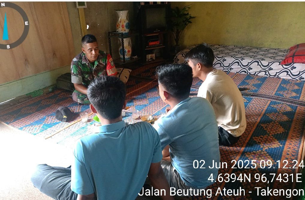 Babinsa Koramil 10/Celala Kodim 0106/Aceh Tengah, Serda Baihaki, melaksanakan kegiatan komunikasi sosial (komsos) bersama masyarakat Desa Arul Gading, Kecamatan Celala, Kabupaten Aceh Tengah, pada Senin (2/6/2025). Langkah ini merupakan bagian dari upaya memperkuat hubungan antara TNI dan warga dalam menjaga ketertiban dan keamanan wilayah.