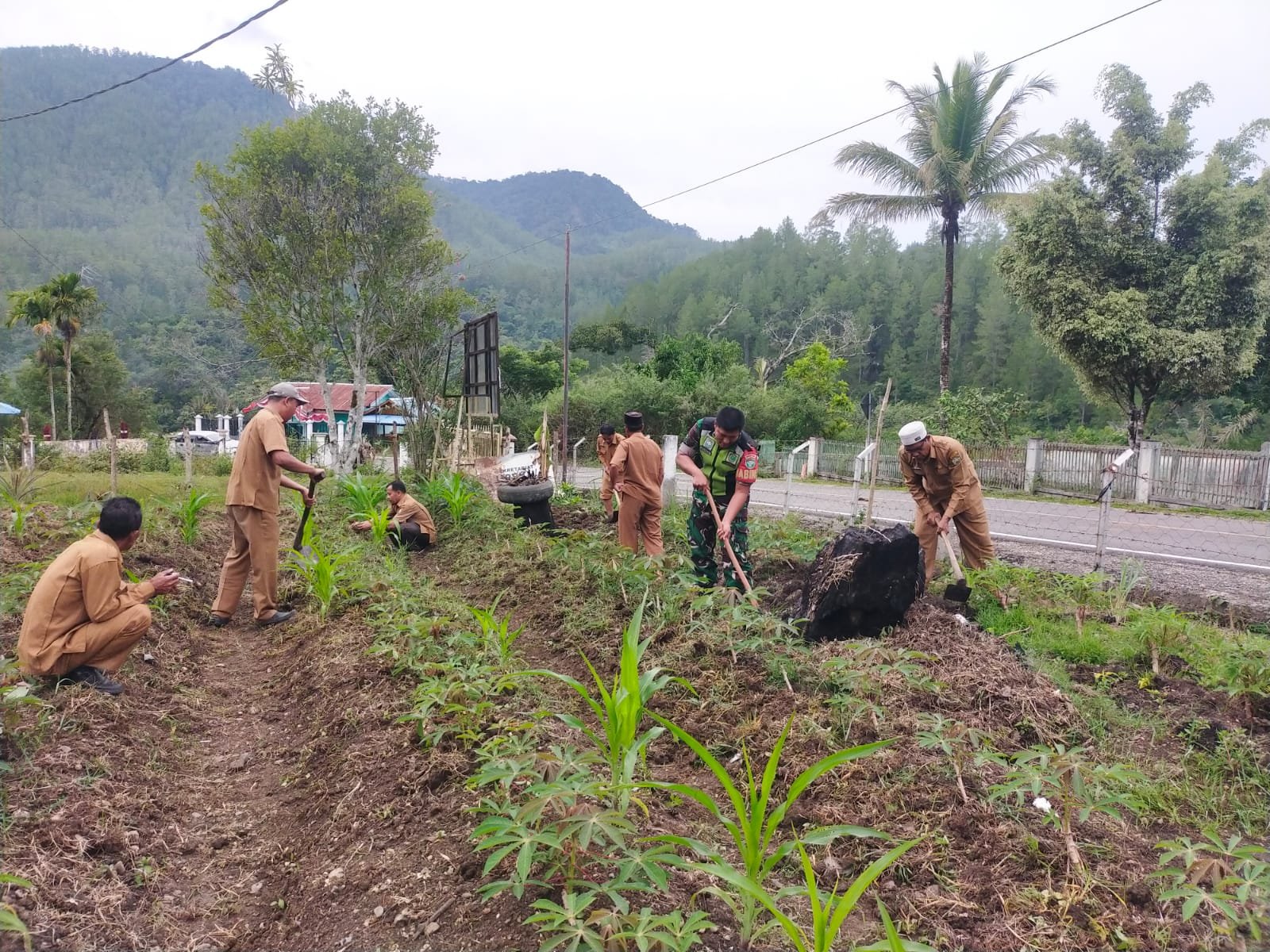 Serka Ajman, Babinsa Koramil 05/Linge, melaksanakan pendampingan kegiatan ketahanan pangan (hanpangan) tumpang sari yang digelar oleh PKK Kecamatan Linge bersama Sekretaris Camat (Sekcam) Ibu Ruqayah, S.H, di halaman Kantor Camat Linge, Desa Kute Baru, Kecamatan Linge, Kabupaten Aceh Tengah, Jumat (10/10/2025).