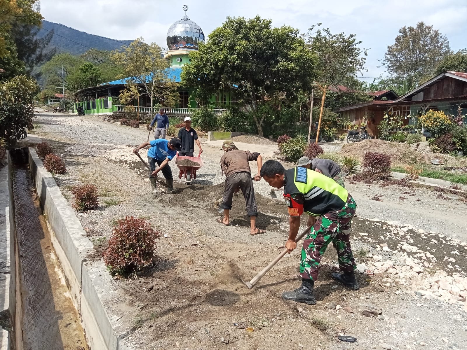 Penimbunan badan jalan, Babinsa mengajak masyarakat untuk melaksanakan gotong royong di Desa Paya Dedep, Kecamatan Jagong Jeget, Kabupaten Aceh Tengah.Rabu,(06/11/2024)