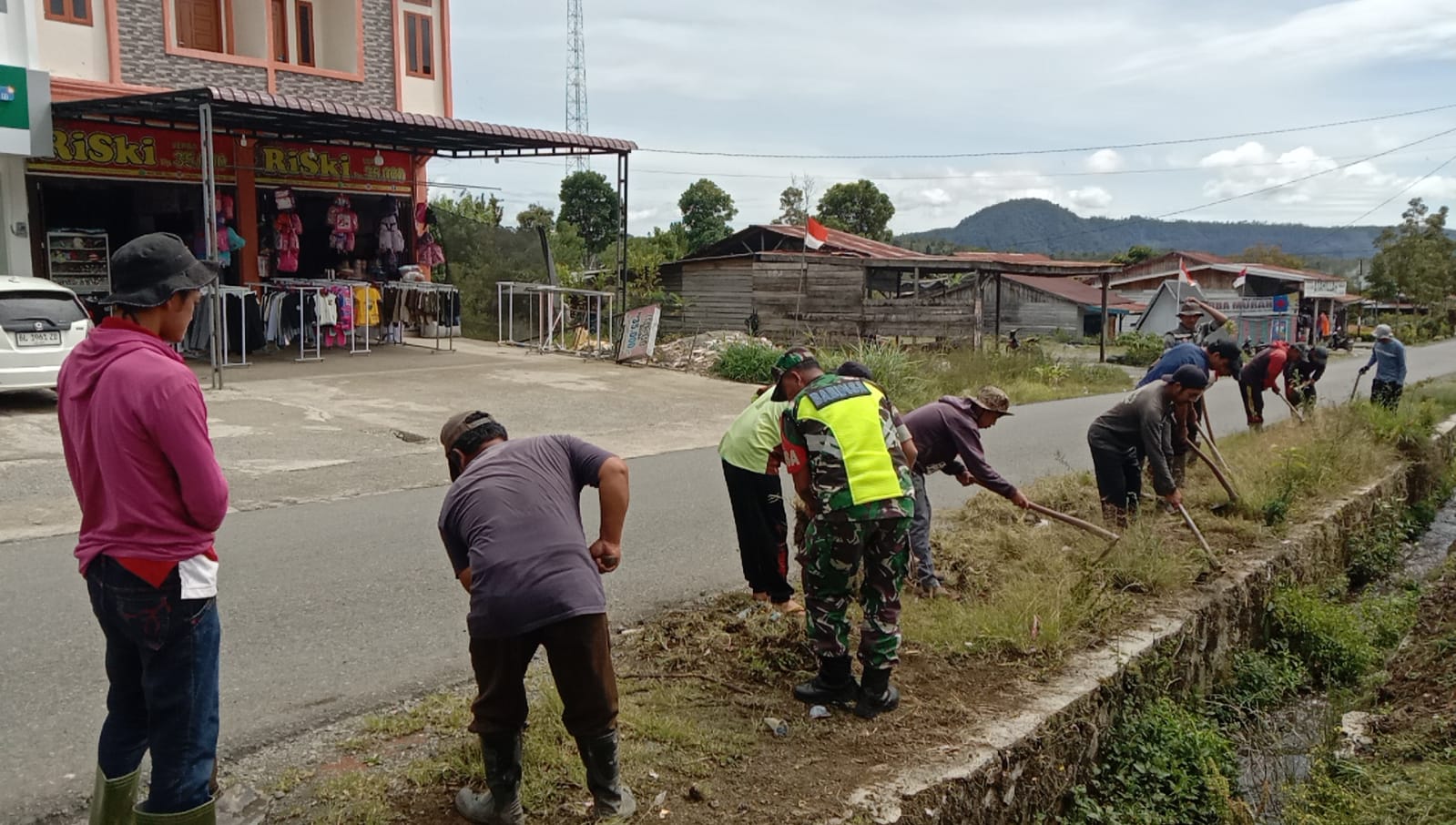 Dalam kegiatan tersebut, Babinsa bersama warga bergotong royong membersihkan jalan desa, saluran air, dan lingkungan sekitar pemukiman. Kerja bakti dimulai sejak pagi dan diikuti puluhan warga setempat yang antusias membantu.