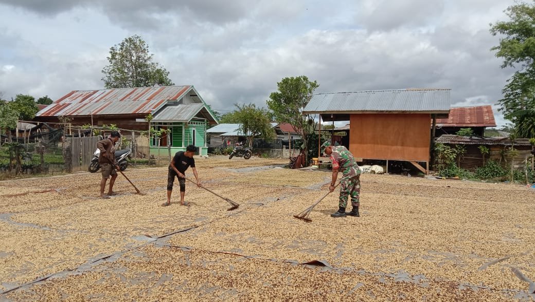 Babinsa Koramil 06/Jagong, Serka Zulil Fazri, melaksanakan kegiatan ketahanan pangan bersama warga Desa Bukit Kemuning, Kecamatan Jagong Jeget, Kabupaten Aceh Tengah, pada Minggu, 23 November 2025.