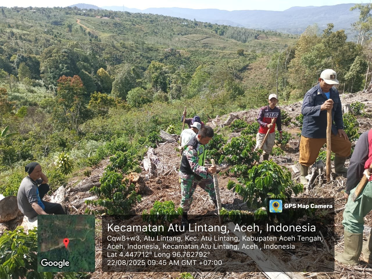 Babinsa Koramil 07/Atu Lintang, Serda Zikran Sahadat, memberikan motivasi sekaligus pendampingan kepada Kelompok Tani Sumber Rejeki dalam kegiatan penanaman Padi Gogo di Desa Atu Lintang, Kecamatan Atu Lintang, Kabupaten Aceh Tengah, pada Jumat (22/8/2025). Kegiatan ini bertujuan memperkuat ketahanan pangan sekaligus mendukung kesejahteraan petani.22 Agustus 2025