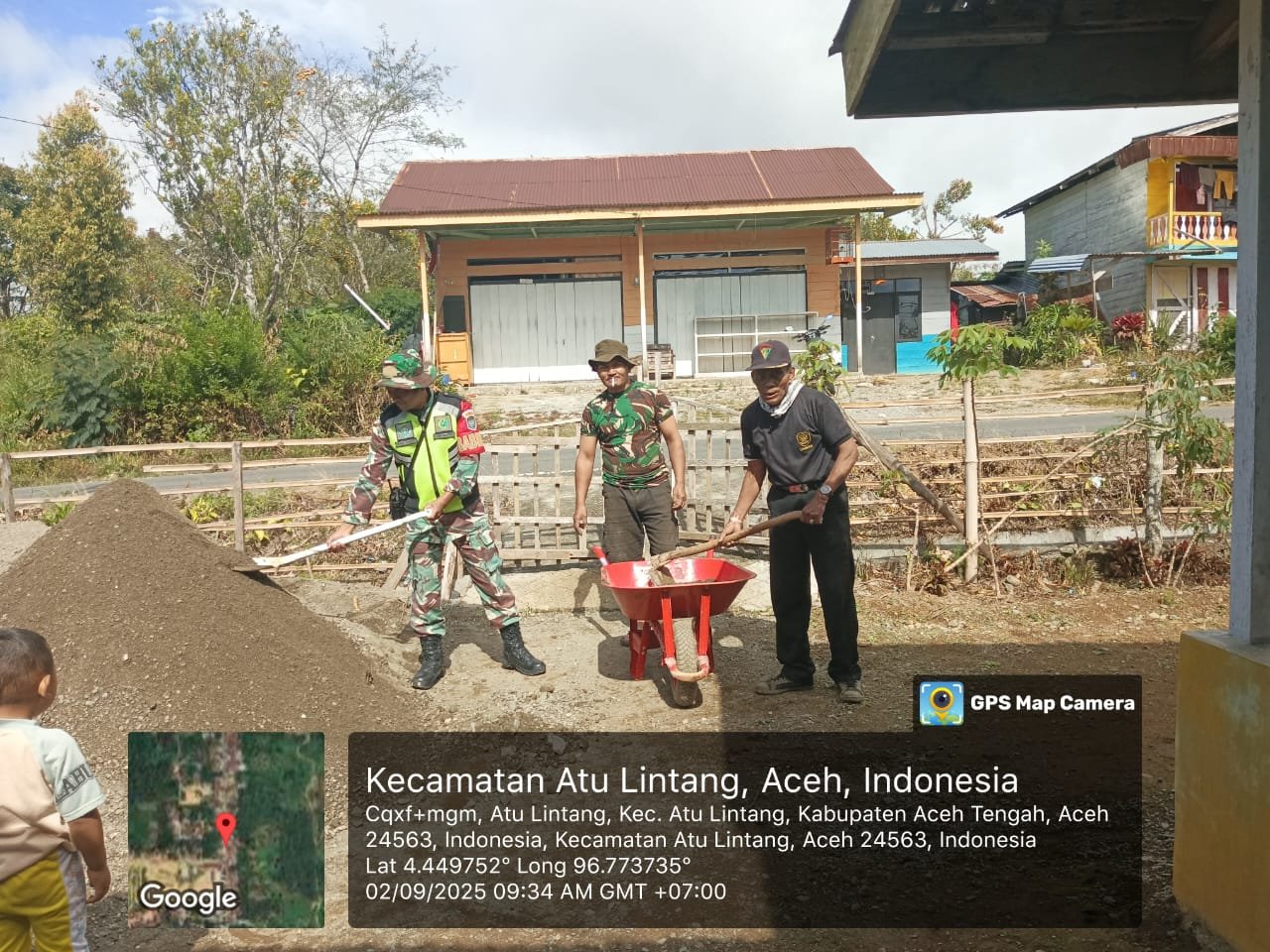 Babinsa Koramil 07/Atu Lintang, Serda Zikran Sahadat, melaksanakan kegiatan karya bakti membantu warga Desa Atu Lintang, Kecamatan Atu Lintang, Kabupaten Aceh Tengah, pada Selasa (2/9/2025). Dalam kegiatan tersebut, Babinsa bersama masyarakat bergotong royong memindahkan tumpukan pasir untuk pembuatan pagar halaman Kantor Desa Atu Lintang.