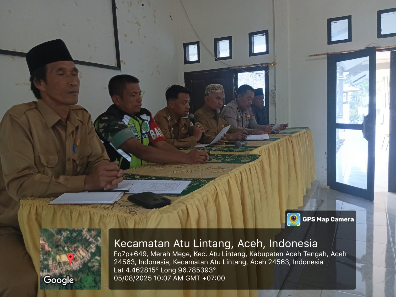 Anggota Koramil 07 Atu Lintang, Serda Zikran Sahadat, menghadiri rapat musyawarah kegiatan dalam rangka menyambut Hari Ulang Tahun (HUT) ke-80 Republik Indonesia di Aula Kantor Camat Atu Lintang, Kabupaten Aceh Tengah, pada Selasa (5/8/2025).