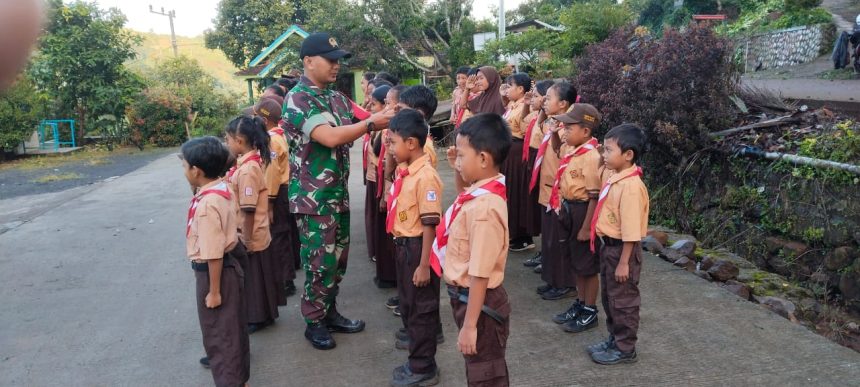 Mojokerto (Jatim) detikperistiwa.co.id | Babinsa Desa Jembul Koramil Kodim 0815/Mojokerto Koptu Ican A, memberikan pelatihan dasar Peraturan Baris Berbaris (PBB) kepada siswa-siswi SD Negeri Jembul, Desa Jembul, Kecamatan Jatirejo, Kabupaten Mojokerto, Jawa Timur, Jum’at (02/02/2024).