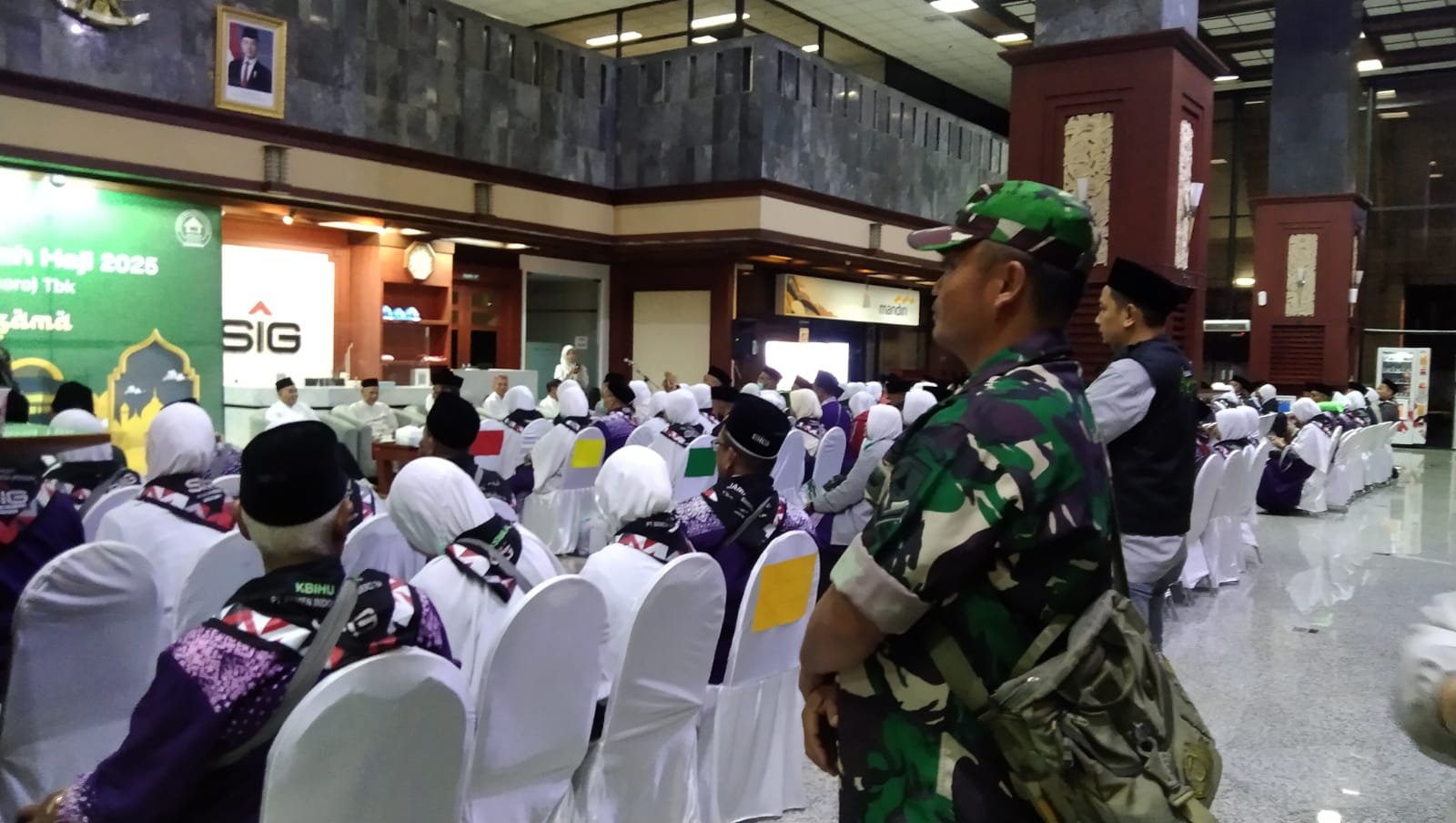 Babinsa Koramil 0817/07 Kebomas Amankan Kedatangan Jama’ah Haji Keluarga Besar Semen Indonesia