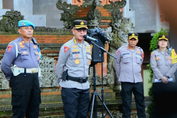 Kesiapan pengamanan ditandai dengan apel yang dipimpin langsung oleh Karo Ops Polda Bali, Kombes Pol. Soelistijono, S.I.K., M.H., di halaman belakang Mapolda Bali. Pada Rabu, (18/3/2026).