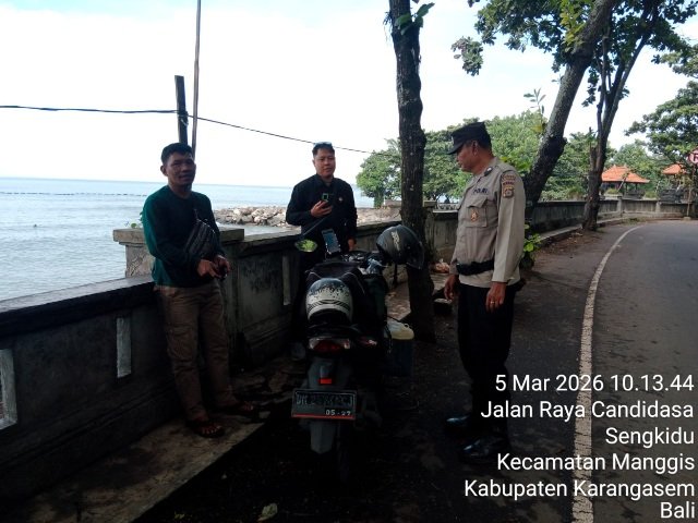 Kapolsubsektor Candidasa Aiptu I Wayan Suwardika bersama personel melaksanakan kegiatan patroli wilayah pada Kamis (5/3) guna menjaga situasi kamtibmas tetap aman dan kondusif di kawasan Candidasa.