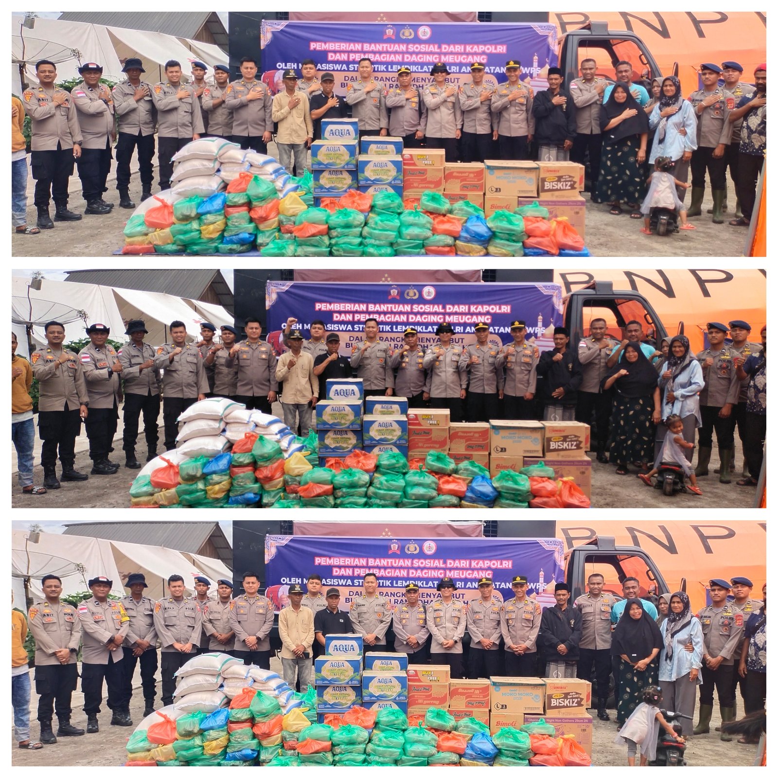 Perwira Menengah Mabes Polri, Kompol Handreas Ardian, mengatakan pendistribusian bantuan dilakukan kepada para pengungsi yang terdampak banjir di Kabupaten Bener Meriah. “Hari ini kami mendistribusikan bantuan sosial dari Bapak Kapolri dan pembagian daging meugang dari mahasiswa STIK-PTIK Angkatan 83. Bantuan sosial diberikan langsung kepada para pengungsi terdampak banjir,” ujarnya di lokasi kegiatan.
