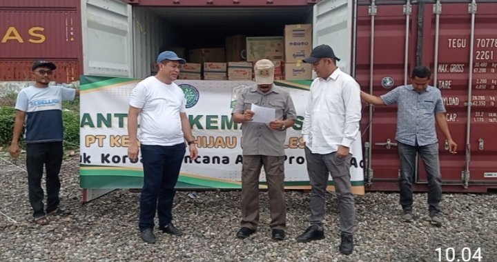 bantuan kemanusiaan dari PT Kencana Hijau Binalestari (KHBL) kepada Pemerintah Provinsi Aceh. Acara ini berlangsung di Pelabuhan Krueng Geukueh, Lhokseumawe, Aceh, pada 28 Desember 2025.