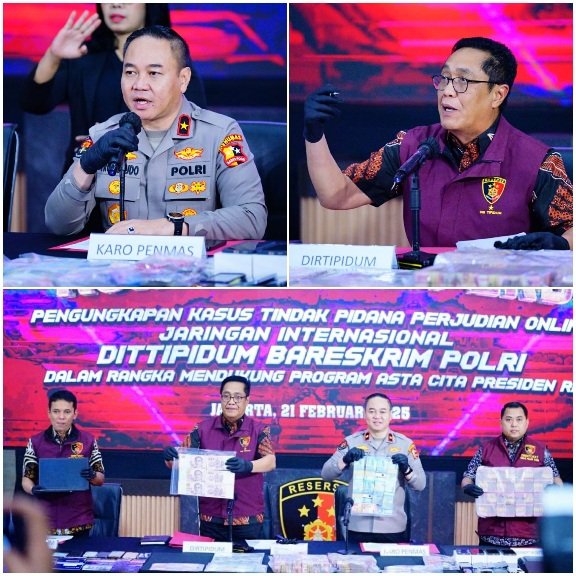 “Kami memastikan tidak ada ruang bagi pelaku perjudian online di Indonesia. Penindakan ini adalah langkah nyata Polri dalam memutus mata rantai perjudian yang telah merugikan masyarakat luas,” ujar Brigjen Pol. Djuhandhani dalam konferensi pers, Jum’at (21/2/2025).