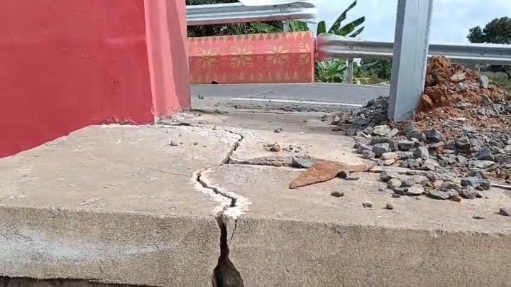 jembatan Layang yang berada di Jalan Lettu Karim,Gandus.Yang Baru diresmikan Oleh Gubernur Herman Deru (25/11/2025) mengalami keretakan di beberapa titik jembatan.