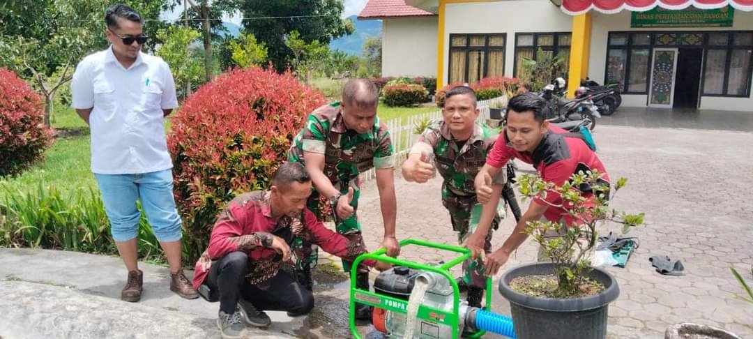 Dandim 0119/BM Letkol Kav Ino Dwi Setyo Darmawan, S.E.,M.Han., melalui Perwira Seksi Teritorial Kapten Inf Takdir saat dikonfirmasi mengatakan. Dinas pertanian Bener Meriah yang didampingi oleh Bati Wanwil, mengecek dan menguji kelayakan pompa air bantuan dari Kementan RI, yang