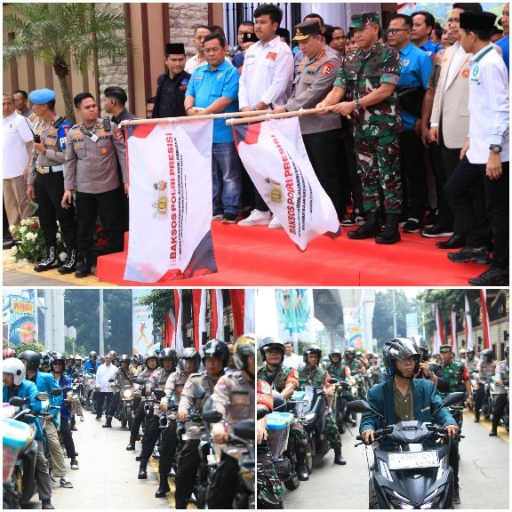 Simbolis pemberian bantuan digelar di Lapangan Bhayangkara Mabes Polri, Jakarta Selatan, Kamis (27/2/2025) siang. Panglima TNI Jenderal Agus Subiyanto turut hadir dalam gelaran baksos tersebut.
