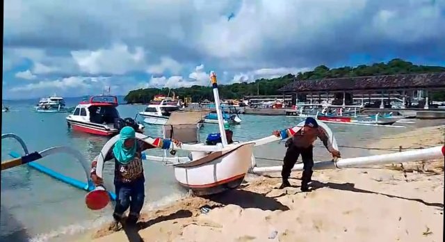 Dalam salah satu patroli di kawasan pantai, personel Sat Polairud Aipda I Wayan Suji mendapati sekelompok nelayan yang tengah berupaya menarik jukung ke daratan. Namun, keterbatasan tenaga membuat proses tersebut berjalan sulit. Melihat kondisi itu, personel Sat Polairud dengan sigap turun tangan membantu. Bersama para nelayan, mereka mendorong jukung hingga akhirnya berhasil menepi dengan aman.