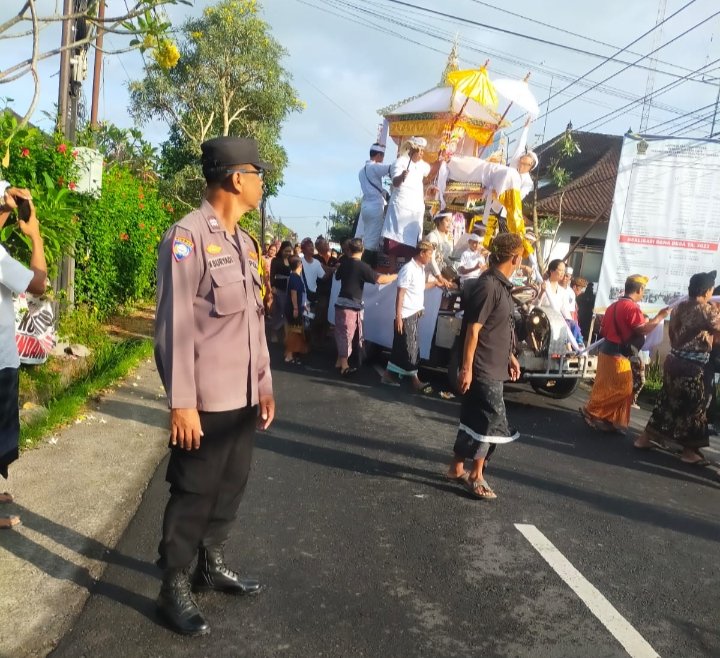Bhabinkamtibmas Desa Tista Aiptu I Nengah Suryadi melaksanakan Pengamanan kegiatan Upacara Pitra Yadnya Ngaben bertempat di Banjar Dauh Pangkung Desa Tista Kerambitan,