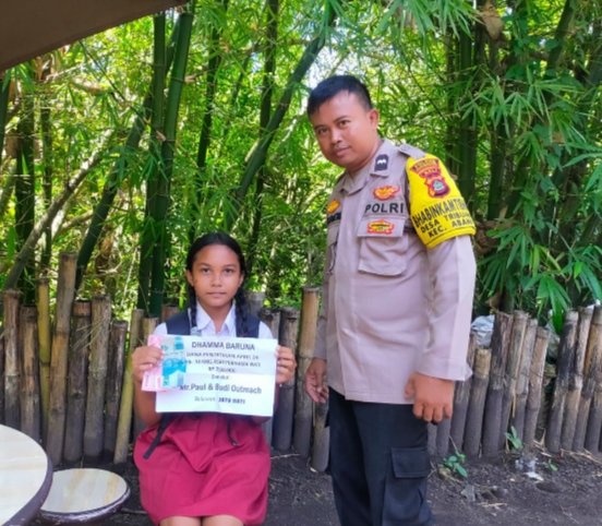 Bhabinkamtibmas Desa Tribuana Aipda I Made Mangku Yasa, S.H. pada hari Kamis tanggal 2 Mei 2024 pukul 09.00 wita melaksanakan penyaluran bantuan pendidikan untuk anak yatim piatu an. Ni Komang Arsi Purnamawati yang diberikan dari Komunitas Satu Hati sebesar Rp. 250.000 (dua ratus lima puluh ribu rupiah).