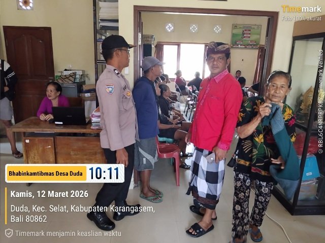 Bhabinkamtibmas Desa Duda Aiptu I Komang Urip Arianto bersama Perbekel Desa Duda melaksnakan kegiatan Monitoring dan Pengawasan Aktivasi Identitas Kependudukan Digital (IKD) bagi warga Desa Duda yang termasuk dalam kategori desil 1-7 pada data tunggal Sosial dan Ekonomi Nasional yang memiliki gawai pintar bertempat diKantor Desa Duda. Pada hari Kamis tanggal 12 Maret 2026,