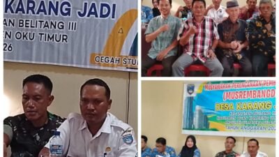 Polsek Belitang III polres Oku Timur menghadiri kegiatan Rembuk Setunting dan Musyawarah Perencanaan Pembangunan (Musrembang) tingkat Desa yang di adakan di Desa Karang Jadi, kecamatan Belitang III, kabupaten Oku Timur, Rabu (17/12/2025).
