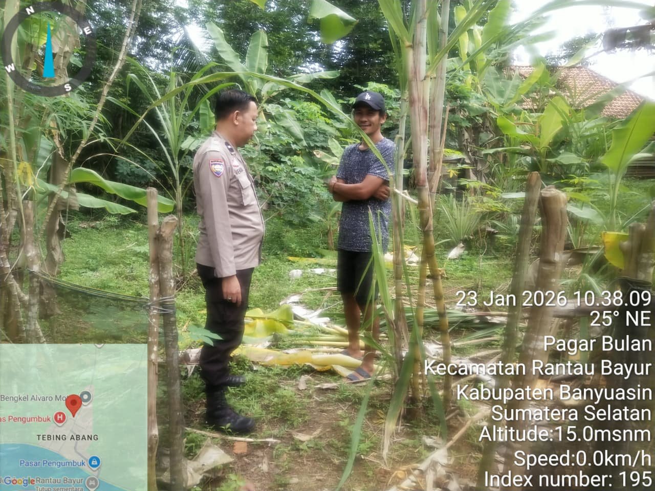 Bhabinkamtibmas Polsek Rantau Bayur, Aiptu Hendra, SE, menyambangi masyarakat desa untuk memberikan himbauan serta mengajak warga berperan aktif dalam Program Pekarangan Pangan Bergizi (P2B) sebagai bagian dari upaya memperkuat ketahanan pangan dari tingkat keluarga.