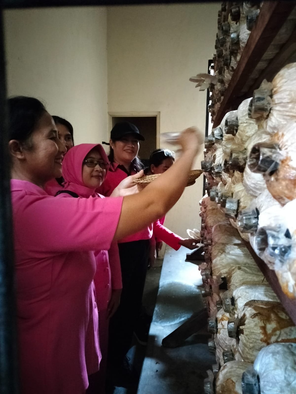 Bhayangkari Polsek Padangbai Panen Jamur, dalam Rangka Ketahanan Pangan Nasional