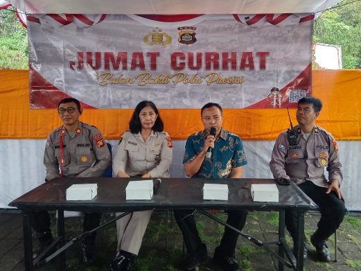 “Digelarnya giat Jum’at Curhat bertujuan untuk menyerap keluh kesah dan aspirasi masyarakat, sehingga setiap permasalahan yang ada di masyarakat dapat di carikan solusi sampai mendapatkan penyelesaian dari semua permasalahannya,”ungkap Kasubdit KimbioBidlafor Polda Bali,