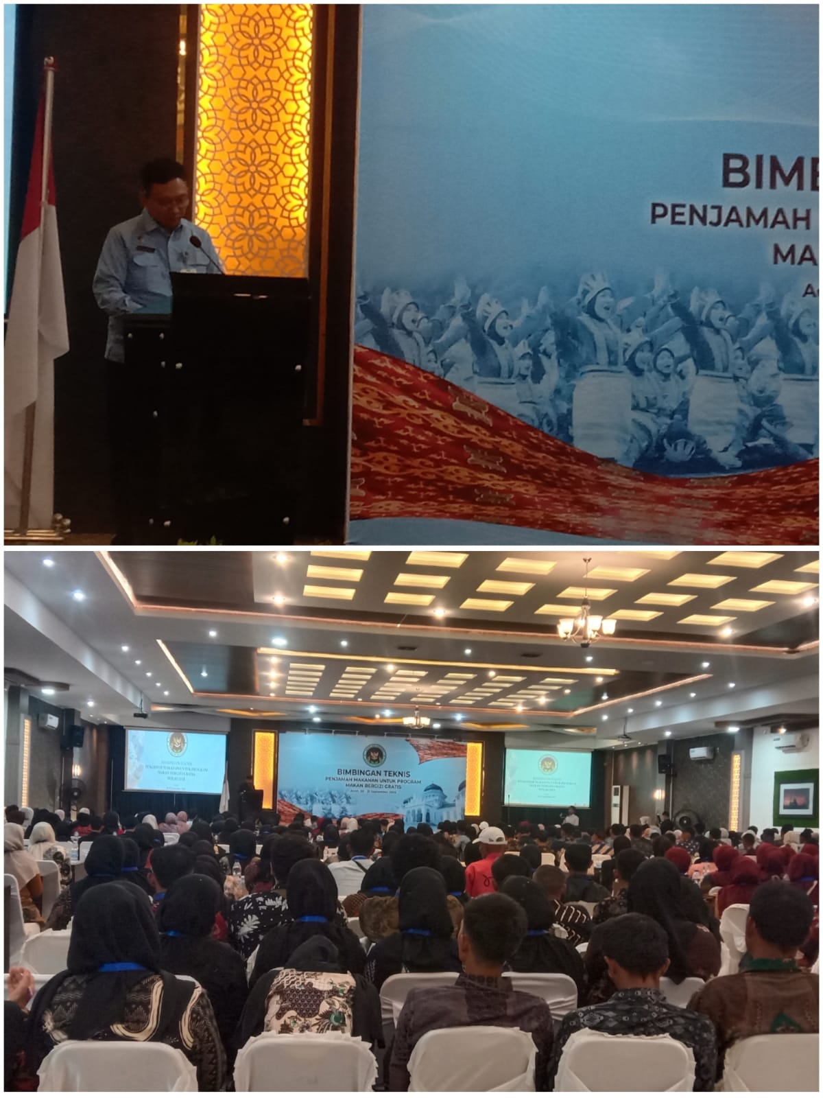 Sebanyak 400 peserta dari berbagai daerah di Aceh mengikuti kegiatan *Bimbingan Teknis (Bimtek) Penjamah Makanan* dalam rangka mendukung program Makan Bergizi Gratis yang digelar pada Sabtu, 20 September 2025 di Aula Hotel Fajar, Kabupaten Bireuen.