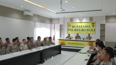 Wakapolres Bangli Kompol M. Akbar Eka Putra Samosir, S.H.,S.I.K.,M.H didampingi Kabag SDM Kompol Made Adi Suryawan, SH., M.M, menerima Tim Biro SDM Polda Bali dalam rangka Supervisi dsn asistensi Bagian SDM Polres Banglo beryempat di Rupatama Polres Bangli, Kamis 12/9/2024.