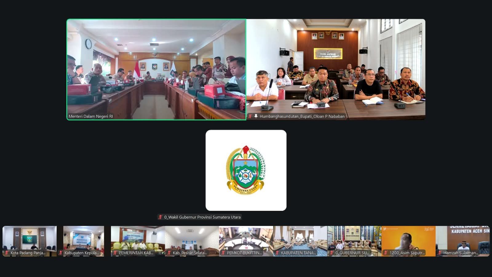 Bupati Humbang Hasundutan, Dr. Oloan Paniaran Nababan, SH, MH mengikuti Rapat Koordinasi (rakor) yang dipimpin oleh Menteri Dalam Negeri (Mendagri) Tito Karnavian dalam rangka Pengecekan Indikator Pemulihan Pemerintahan dan Kemasyarakatan Pasca Bencana di Wilayah Sumatera, dilaksanakan secara Video Converence (Vidcon) Jumat, 9 Januari 2026.