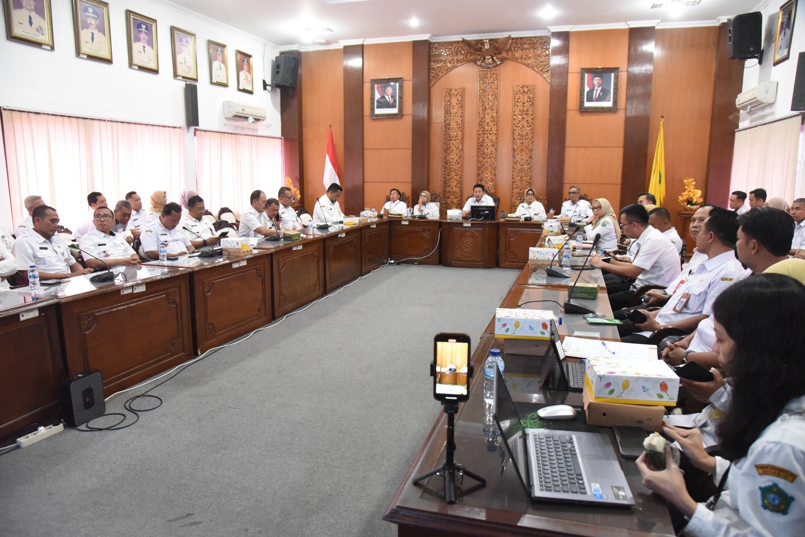 Seluruh camat dan Kasi Pembangunan hadir dalam rapat tersebut. Begitu pula dengan Kepala Dinas PUBMSDA Sidoarjo yang juga datang bersama Kabid Jalan dan Jembatan.