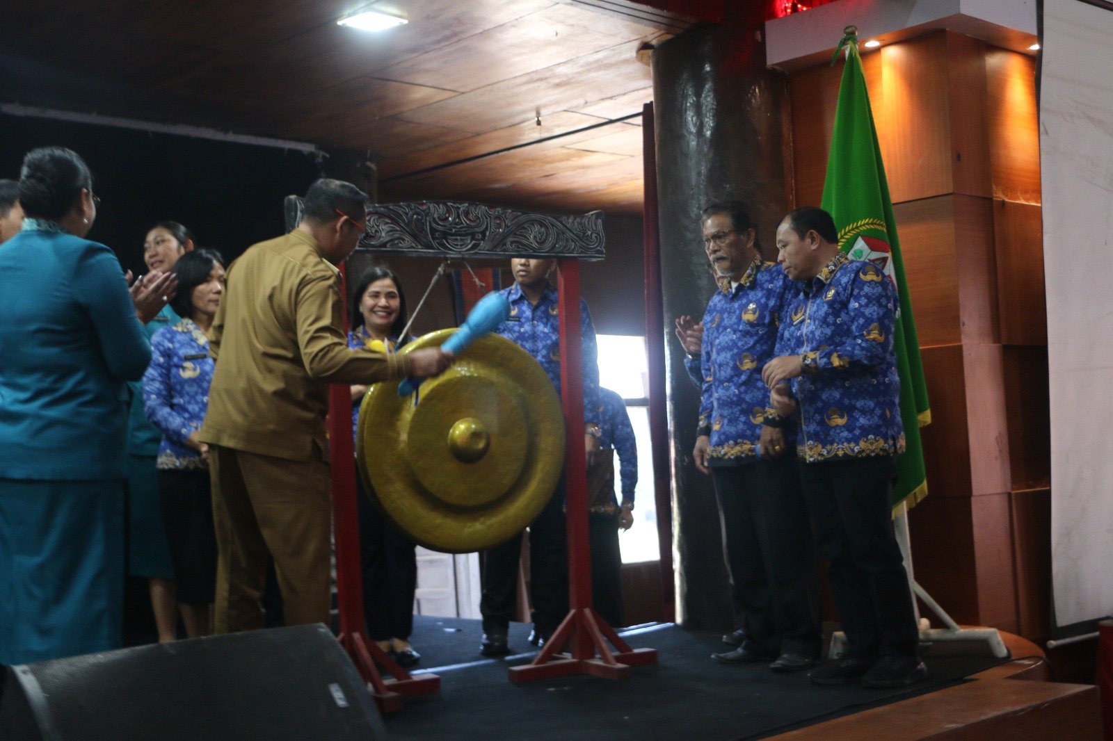 Bupati Tapanuli Utara Dr. Jonius Taripar Parsaoran Hutabarat, S.Si., M.Si. bersama Ketua TP PKK Kabupaten Tapanuli Utara, Ny. Neny Angelina JTP Hutabarat Launching Aplikasi ‘HUTA SEHAT’ (Hidup Unggul Tapanuli Utara, Sistem Elektronik Hapus Stunting) yang digelar di Sopo Partungkoan Tarutung, Selasa (28/10/2025).