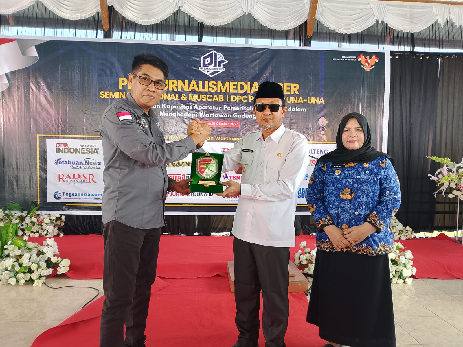 Bupati Kabupaten Tojo Una-una, Ilham Lawidu, bersama Wakil Bupati Hj. Surya, S.Sos., M.Si, menghadiri Musyawarah Cabang I (Muscab) Dewan Pimpinan Cabang (DPC) Pro Jurnalismedia Siber (PJS) Tojo Una-una yang dirangkaikan dengan Seminar Nasional, Rabu (1/10/2025), di Marina Cottage’s, Ampana.